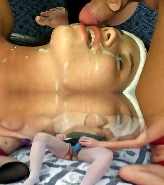 Sizzling warm exotic young brunettes suck cock of a chubby boy