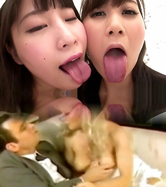 Asian lesbian smooch with lots of spit