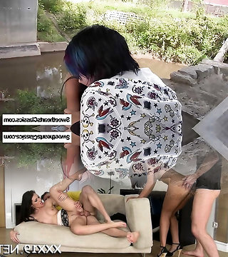 Supah hot threesome with 2 teen babes enjoying hard cock
