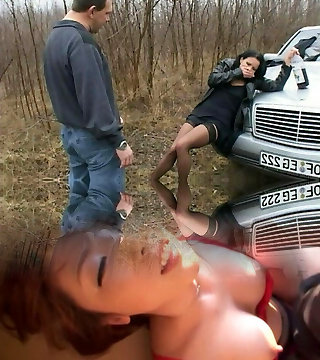 A stunning looking German brunette gets punished in the woods