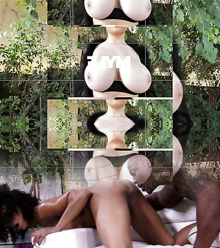Black young man with a unreal massive spunk-pump feeds busty babe