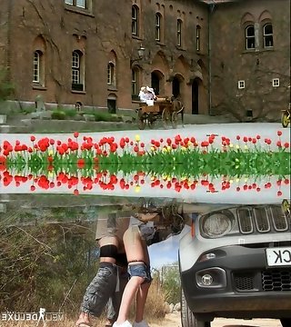 Sumptuous looking German maid's pleasing their boss outdoors
