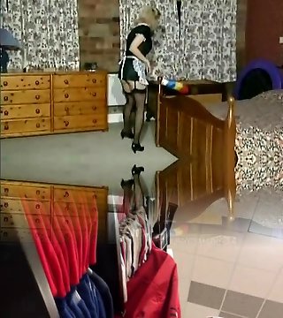 Kinky maid in uber-sexy lingerie set with pantyhose and garters fucks like nobody