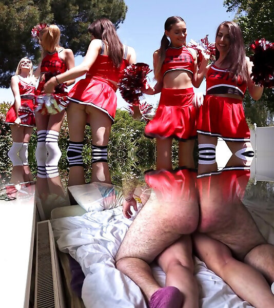 Sexy cheerleaders drop their panties to have group sex - Mia Taylor