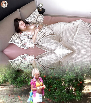 Young Dude caught old Grandma masturbate and help her with Lovemaking