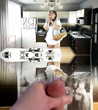 Cheerful maid without panties eats a lot of bananas in the dining apartment. ASMR 2