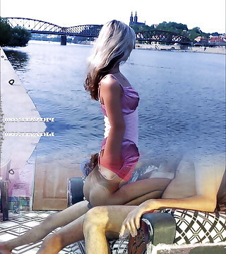 Good looking German ash-blonde pleasing a loaded cock outdoors
